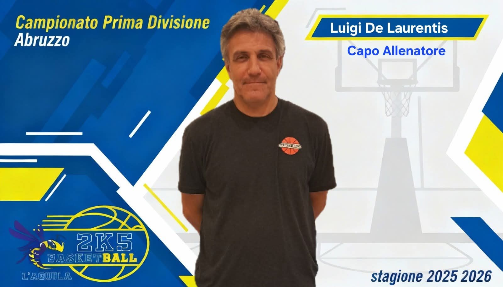 La prima squadra del Basket 2k5 L'aquila dopo la salvezza dell'anno scorso riaffronta il campionato prima Divisione maschile e si appresta a presentare il nuovo allenatore Luigi de Laurentis.